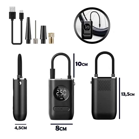 Mini Compressor de Ar Digital Portátil - USB Recarregável - Calibrador de Pneu Profiss