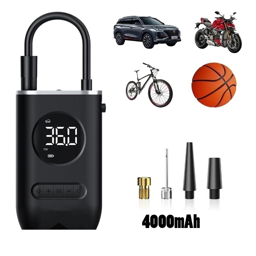 Mini Compressor de Ar Digital Portátil - USB Recarregável - Calibrador de Pneu Profissional 4000mAh