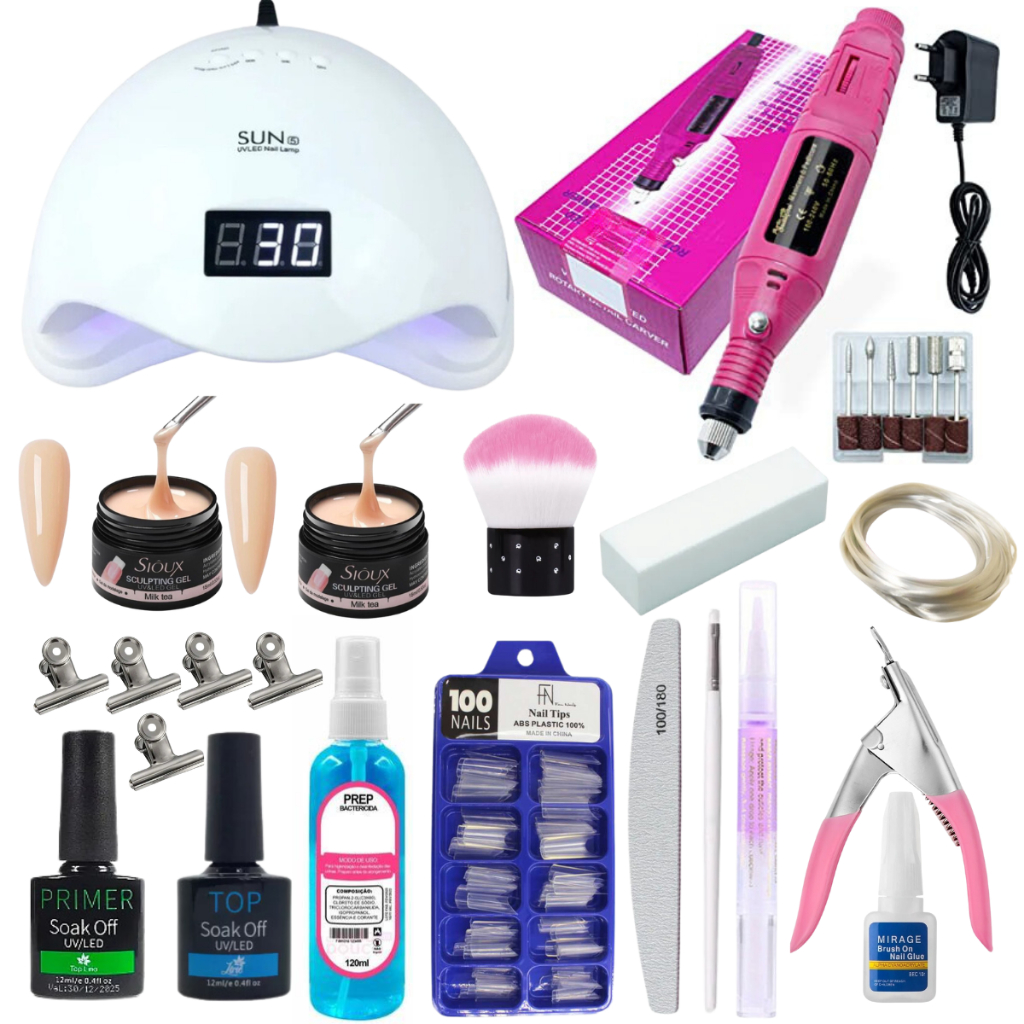kit acrigel fibra de vidro gel iniciante completo cabine sun5 48w lixadeira unhas Gel sioux