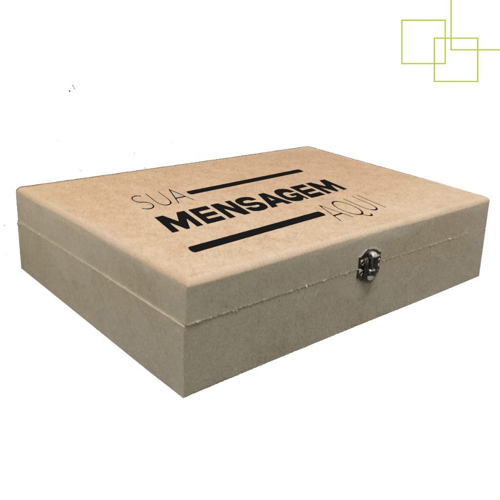 Caixa Personalizada em MDF Decorada a Laser Imagem Logo Desenho Texto com Fecho 26x19x6