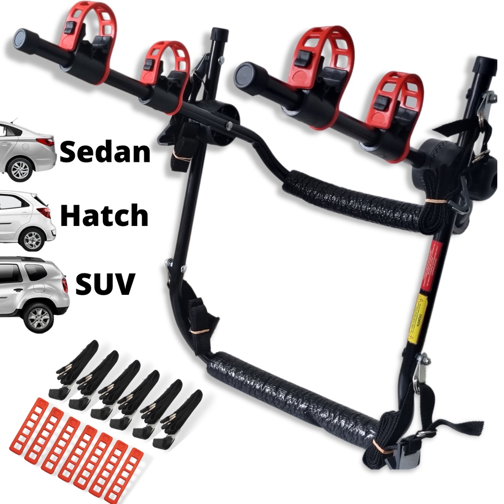 17 - Suporte para bike Transbike 2 bicicletas POP Preto tira Vermelha Sedan Hatch MTB Speed