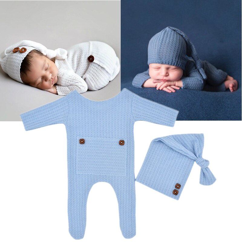 2 Pcs/Set Chapéu Sólido Infantil + Conjunto De Fato De Bebê Romper Adereços Fotográficos Para Recém-Nascidos