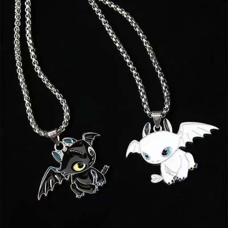 2pcs/Conjunto Moda Desenho Animado Preto Branco Noite Maléfico Pingente Colar Hip Hop Casal Joias