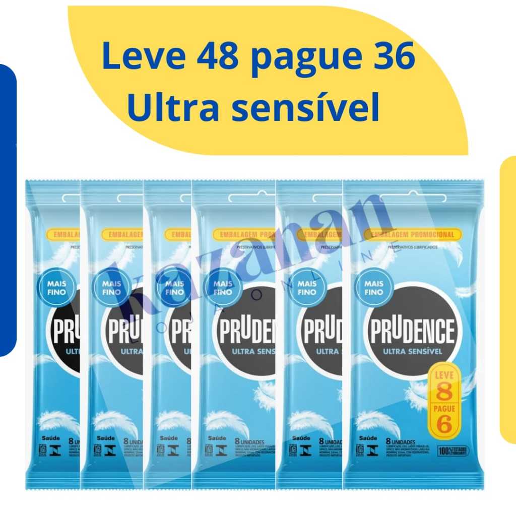 Kit 48 Preservativo Camisinha Masculino Lubrificado Ultra Sensível Prudence c/ 8 un cada Embalagem