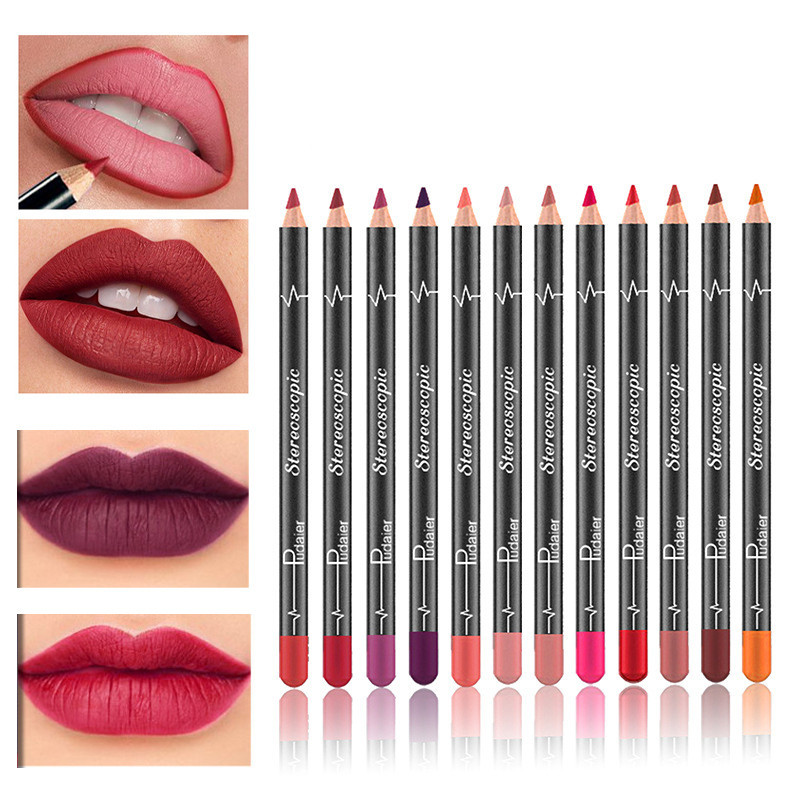 12 Cores Lápis para os lábios Caneta Batom Mate Caneta Batom à prova d'água Linha de Gancho Maquiagem para os lábios