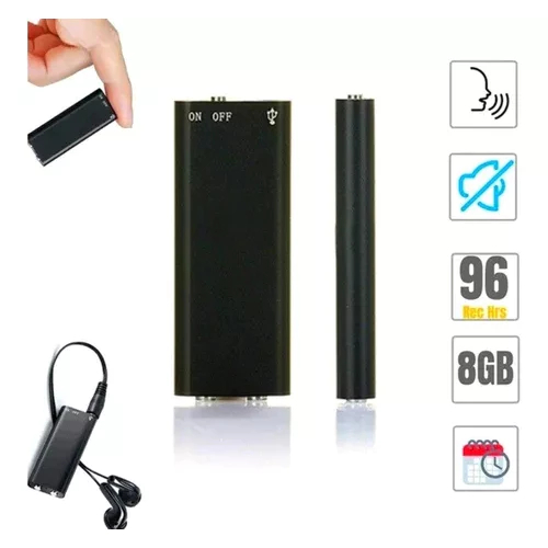 Mini Gravador de Voz Grava 96 Horas - Micro Escuta Profissional 8GB