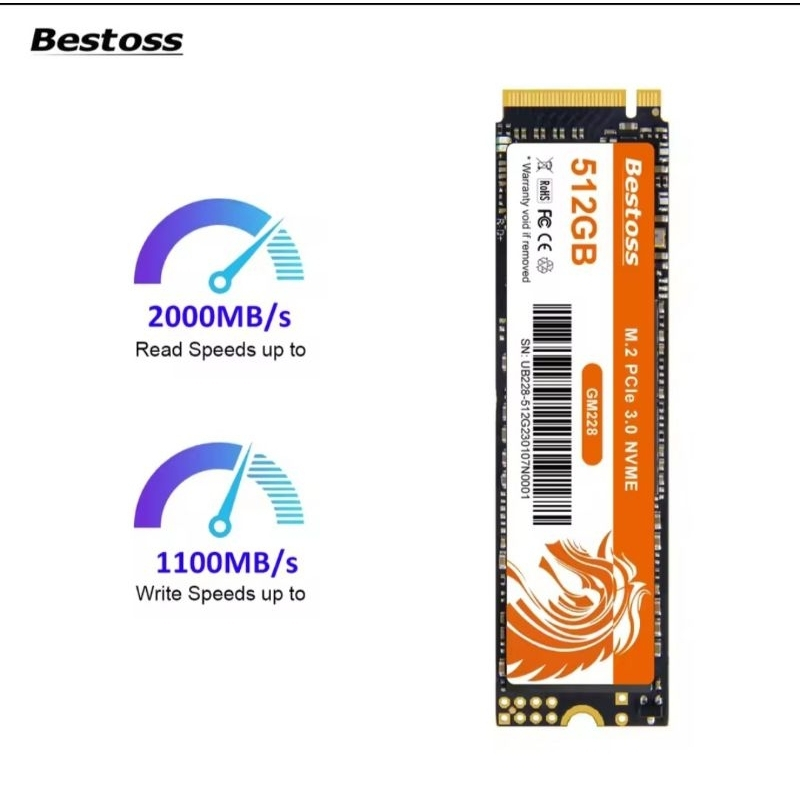 SSD Bestoss NVMe M2, 512GB, SSD, Notebook, PC, Video Games