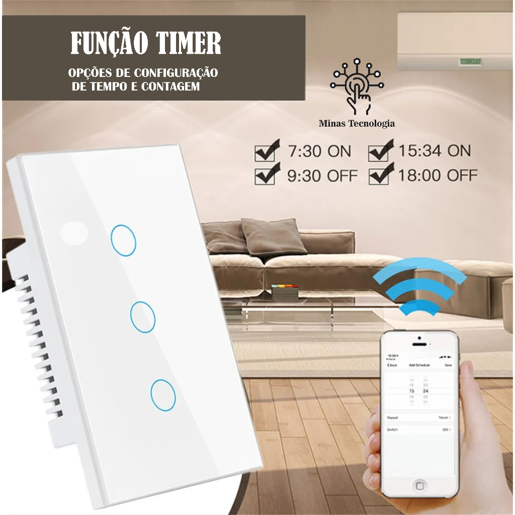 Interruptor Wi-fi Inteligente 1 Botão Touch Digital Alexa Original painel de vidro -ENVIO IMEDIATO PELOS CORREIOS