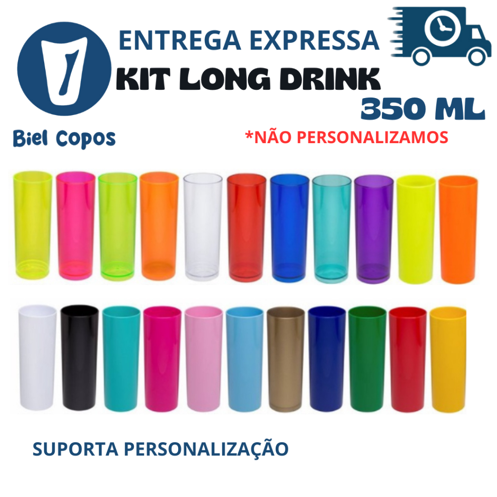 Kit 30 Copo Long Drink Liso 350 mL várias cores- Envio imediato