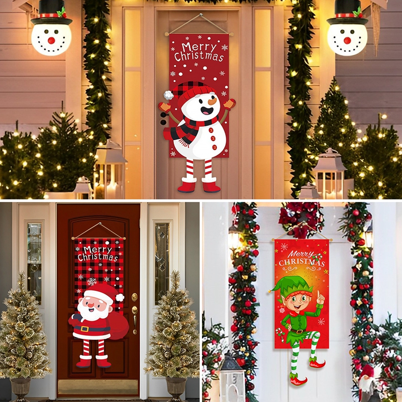 3 Estilos Feliz Natal Banner Decorações De Para Casa Bandeira De Poliéster Pendurada Na Parede Decoração Ornamentos Ano Novo 2024
