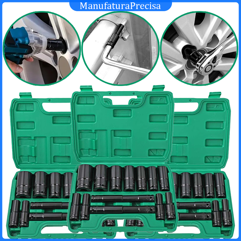 Jogo de Soquetes de Impacto Longo 1/2 10 Peças 8 A 24mm 15 Peças 8 A 32mm Soquete Sextado
