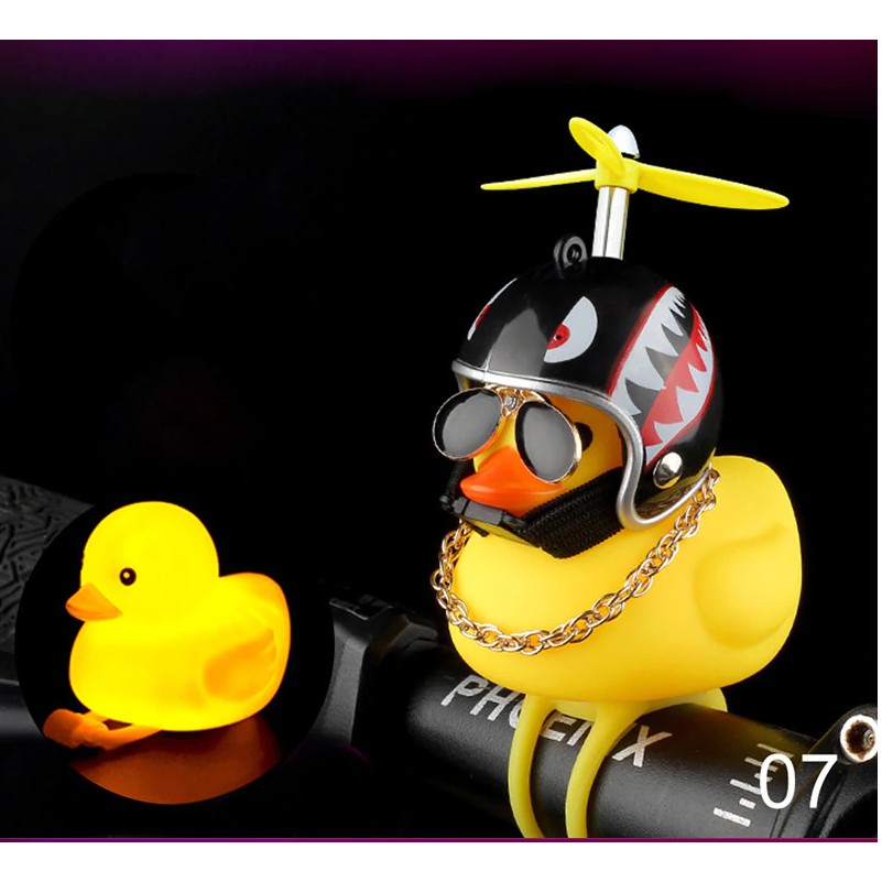 Patinho Pato Amarelinho Com Óculos Capacete Hélice Led Buzina Enfeite Carro Moto Para Guidão
