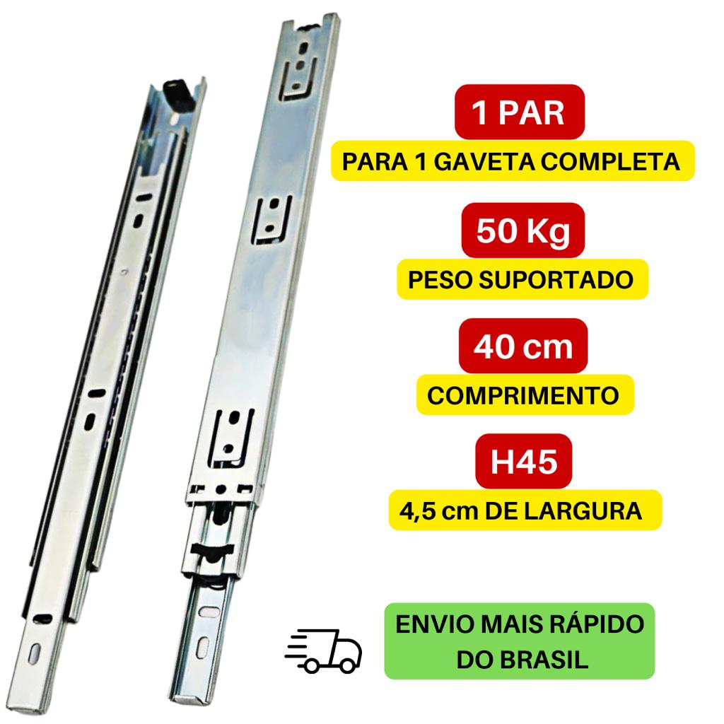 Corrediça Telescópica Para Gaveta 40cm 400mm 35kgs O PAR