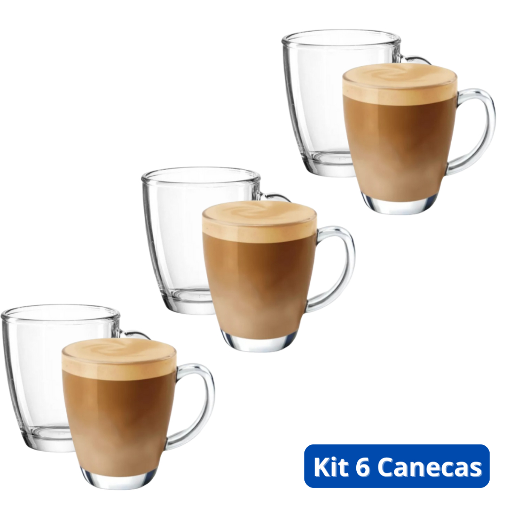 Kit 6 Canecas de Chá Vidro 350ml Grande Resistente Café Leite Premium Luxo