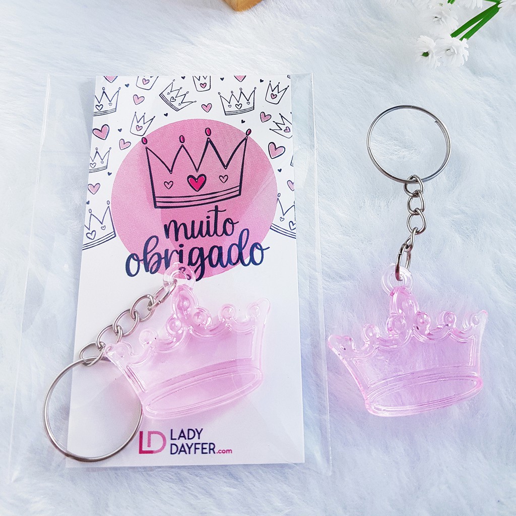 Kit 50 Chaveiros Coroa Rosa | Lembrancinha Chá de Fraldas Bebê | Nascimento Maternidade Aniversário