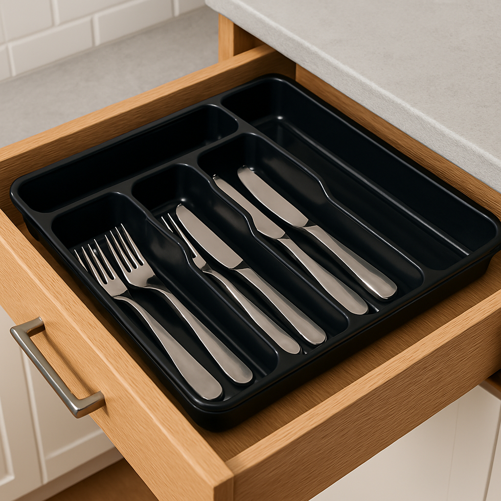 Porta Talheres Para Gaveta Organizador Com 5 Divisórias Preto