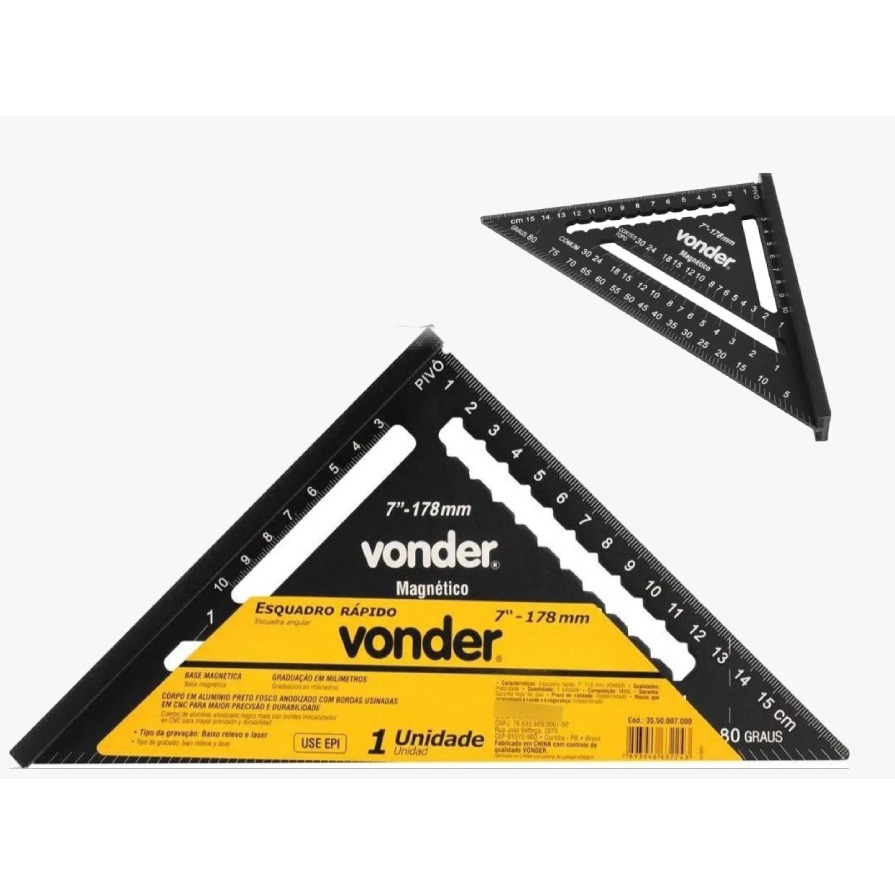 Esquadro Rápido Speed Square Alumínio Triangular 7" Vonder