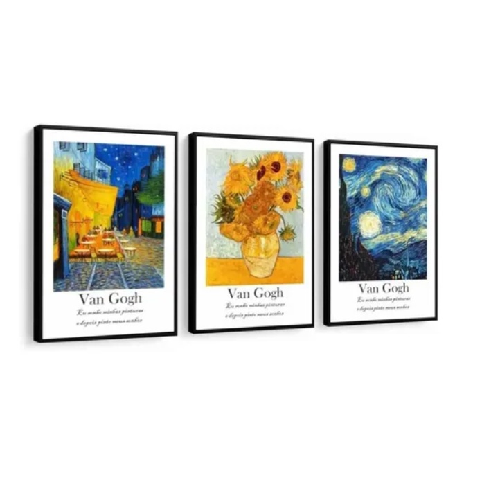 Kit Quadros Decorativos Pinturas Famosas Van Gogh Sala Casa Papel de Parede 60 x 30Cm Magnus 3352