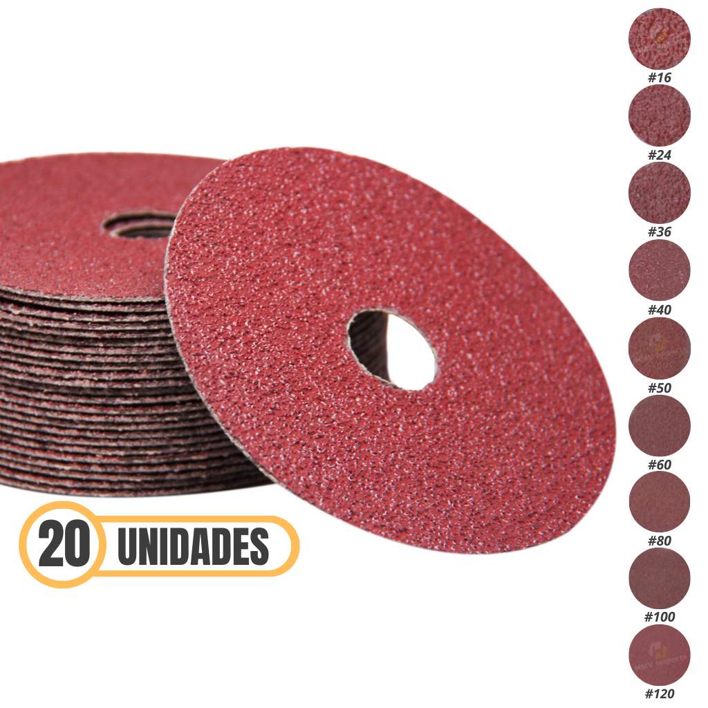 Kit 20 Discos De Lixa 115 x 22mm Óxido de Alumínio Para Lixadeira Esmerilhadeira Grão 16, 24, 36, 40, 60, 80, 100 e 120 Fertak