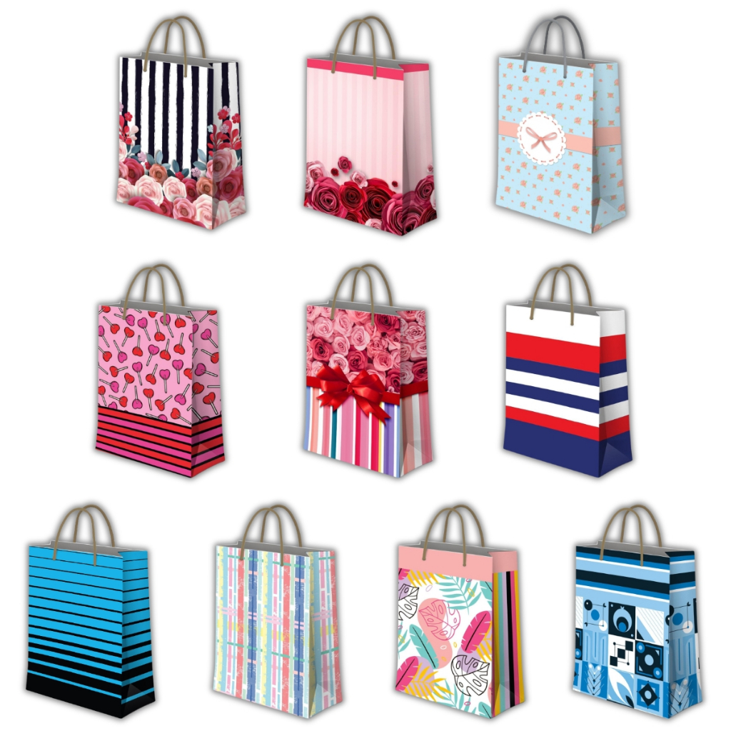 KIT 48 E 60 SACOLAS DE PRESENTE MINI 17 cm x 11 cm x 3,9 cm Diversas Estampas