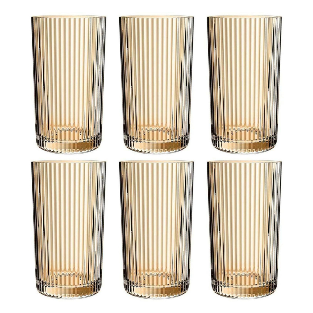 Conjunto 6 Copos 420Ml De Vidro Jogo Copo Vidro Taca Ambar Suco Água Chá Graffiato HauskraftVinho