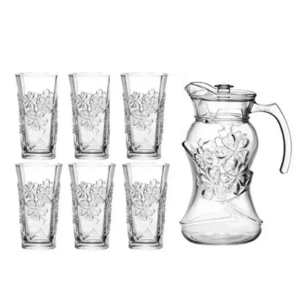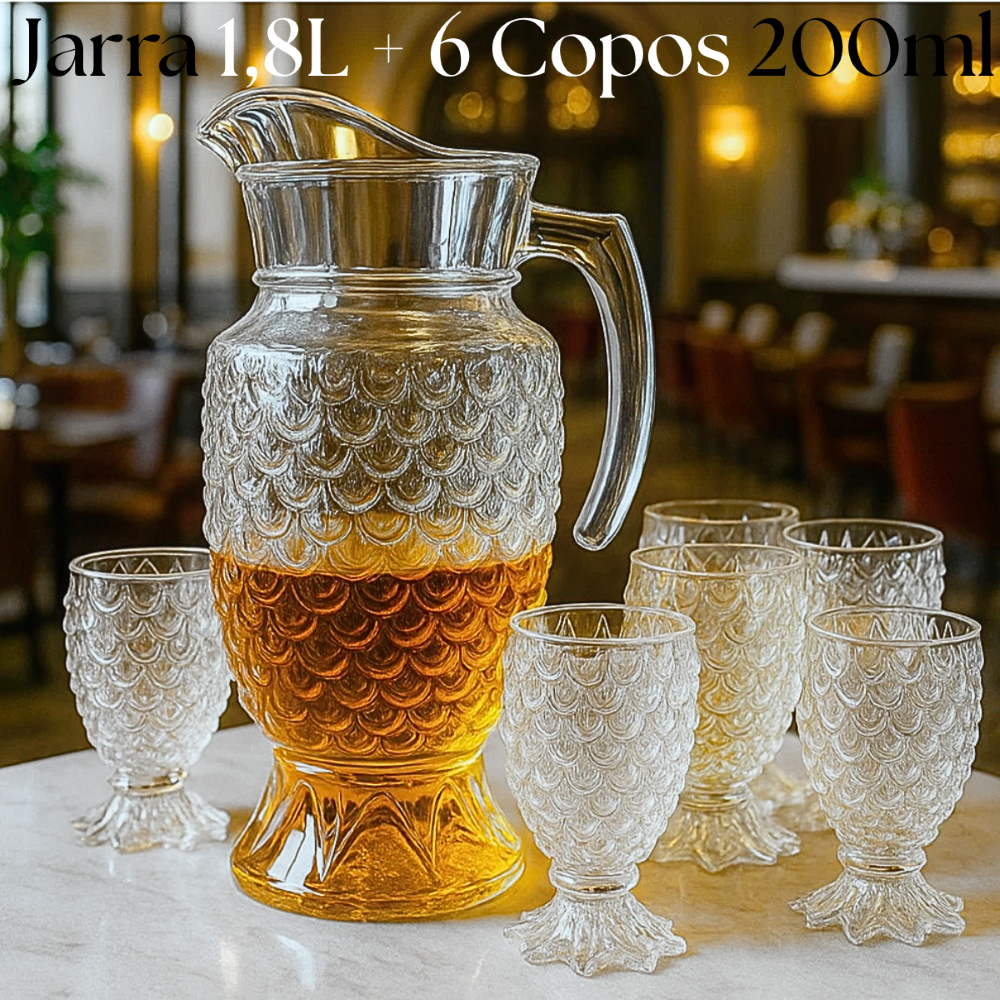 Conjunto Jogo Kit Jarra Copo De Vidro 7 Peças Suco Agua 1,8L