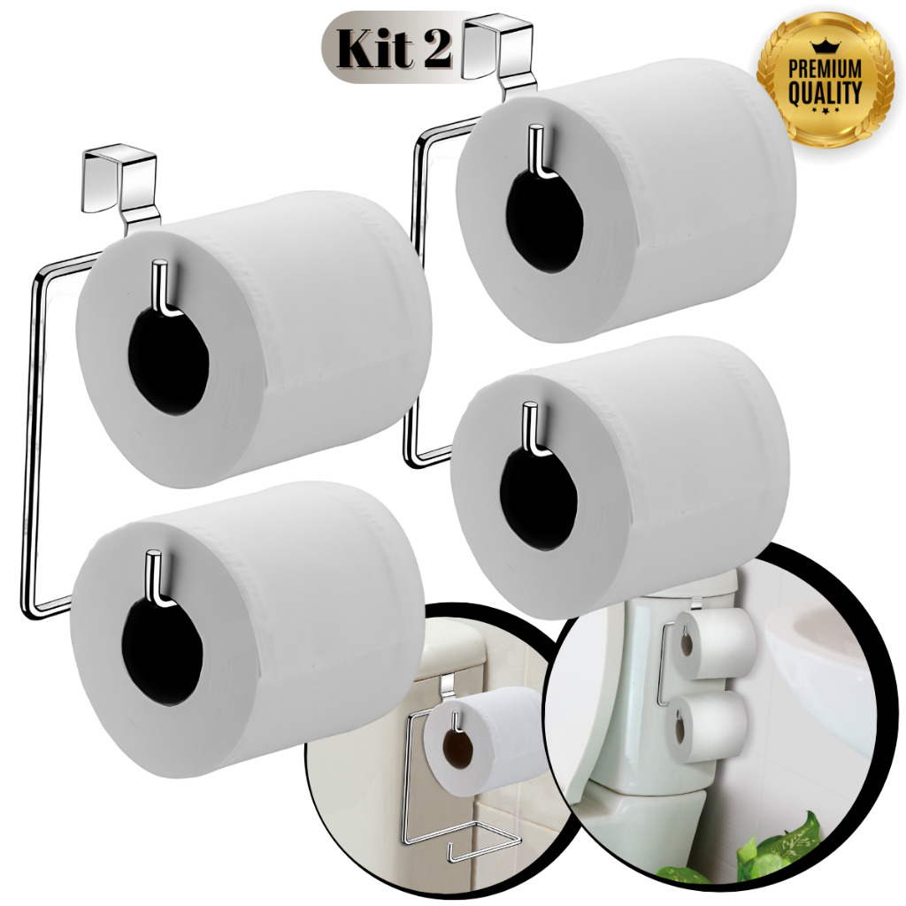 Suporte De Papel Higiênico Duplo Para Caixa Acoplada Aramado Cromado Pratico Porta Papel Higienico