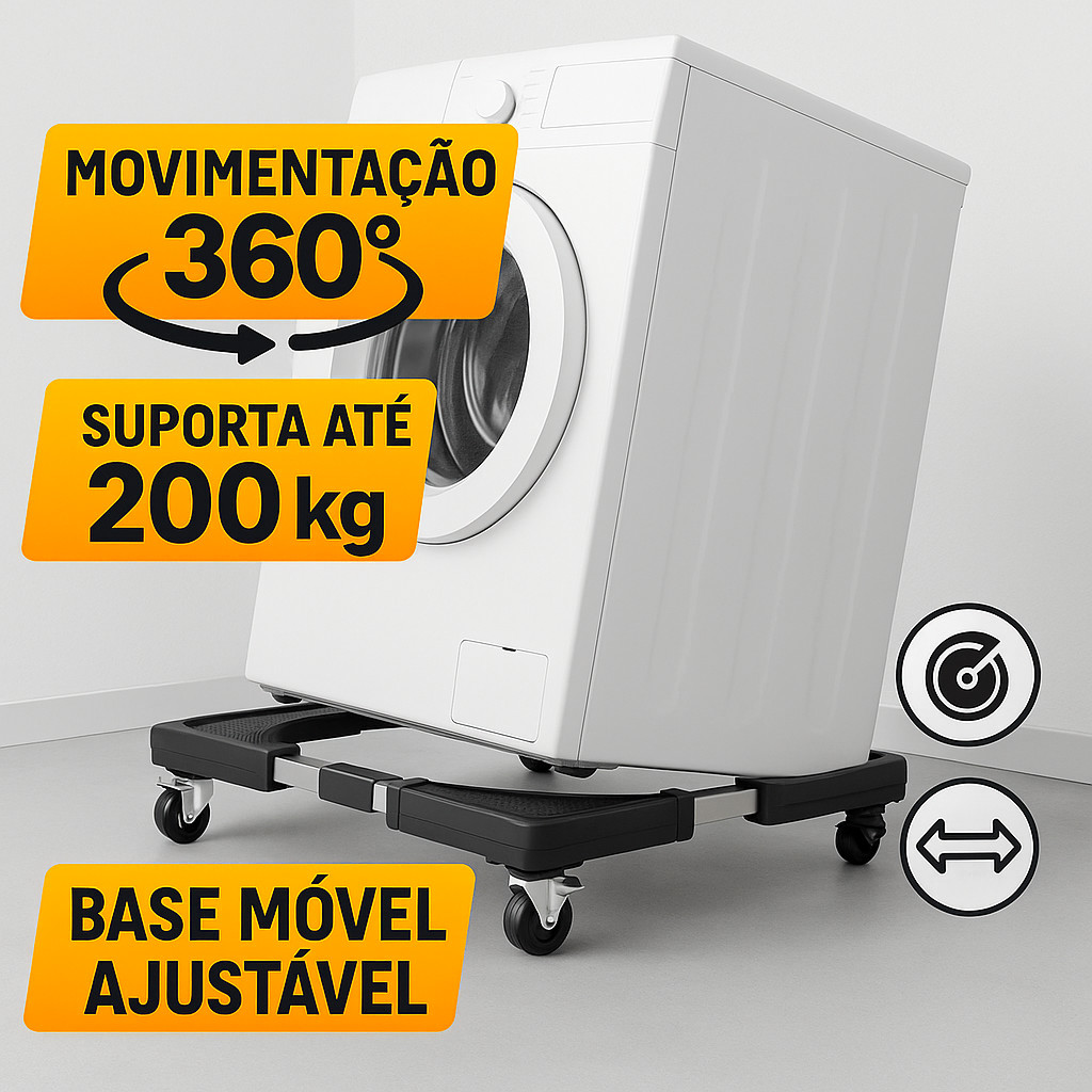 Suporte Base C/ Rodinhas Ajustável Máquina Lavar, Fogão E Móveis 200kg