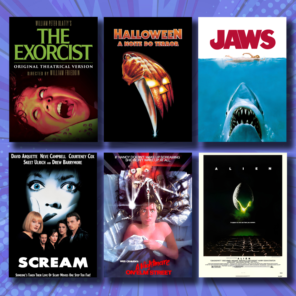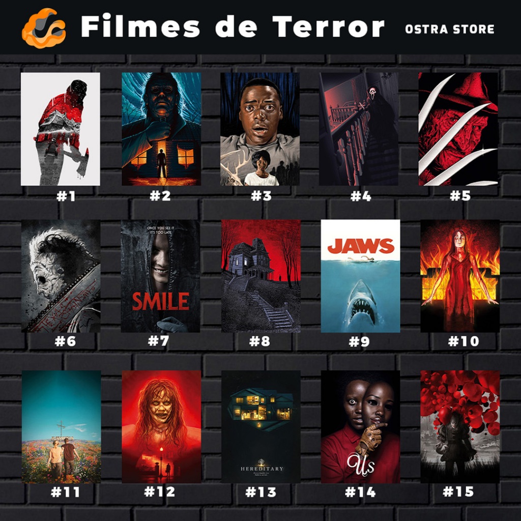Poster Filmes de TERROR CLÁSSICOS [Sexta-Feira 13, Halloween, Pânico, Alien, Tubarão] A4 Decoração Halloween Terror