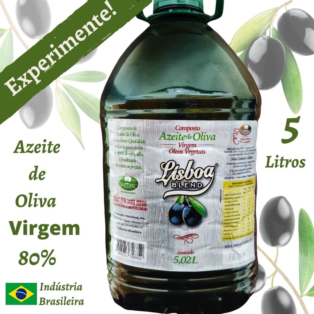 Azeite de Oliva Nacional 5 Litros Puro Blend de 80% Azeite de Oliva Virgem Indústria Brasileira