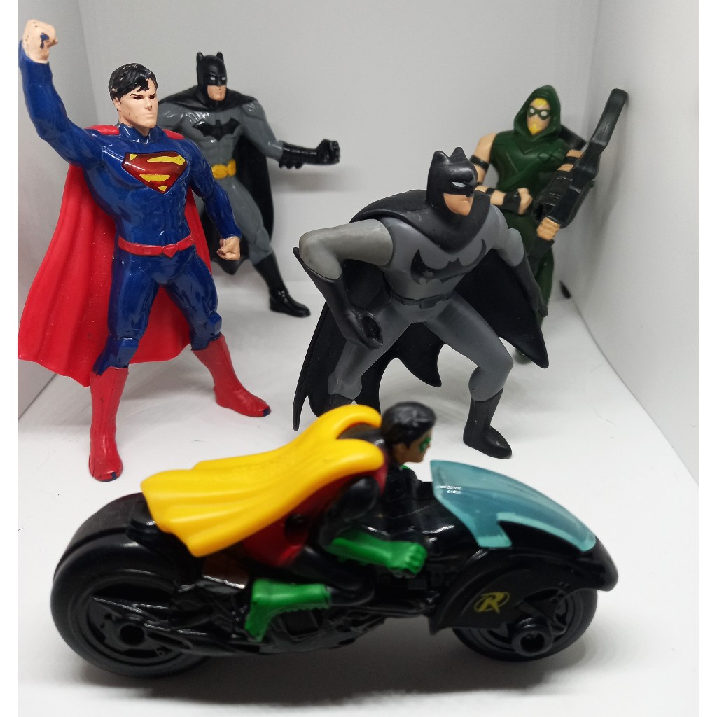 Bonecos de ação coleção Mc Donalds 2015 - Batman, Lanterna Verde, Super Homem e Robin na motocicleta com marcas de uso