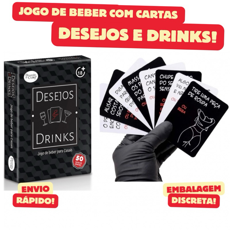 Jogo de Cartas Desejos e Drinks Faz ou Bebe Desafio Esquenta para Casal Namorados Adultos Baralho de Beber shot drink