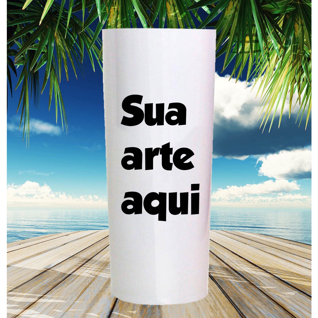 Kit C/ 20 unidades copo personalizado Long Drink jateado com tampa sheik