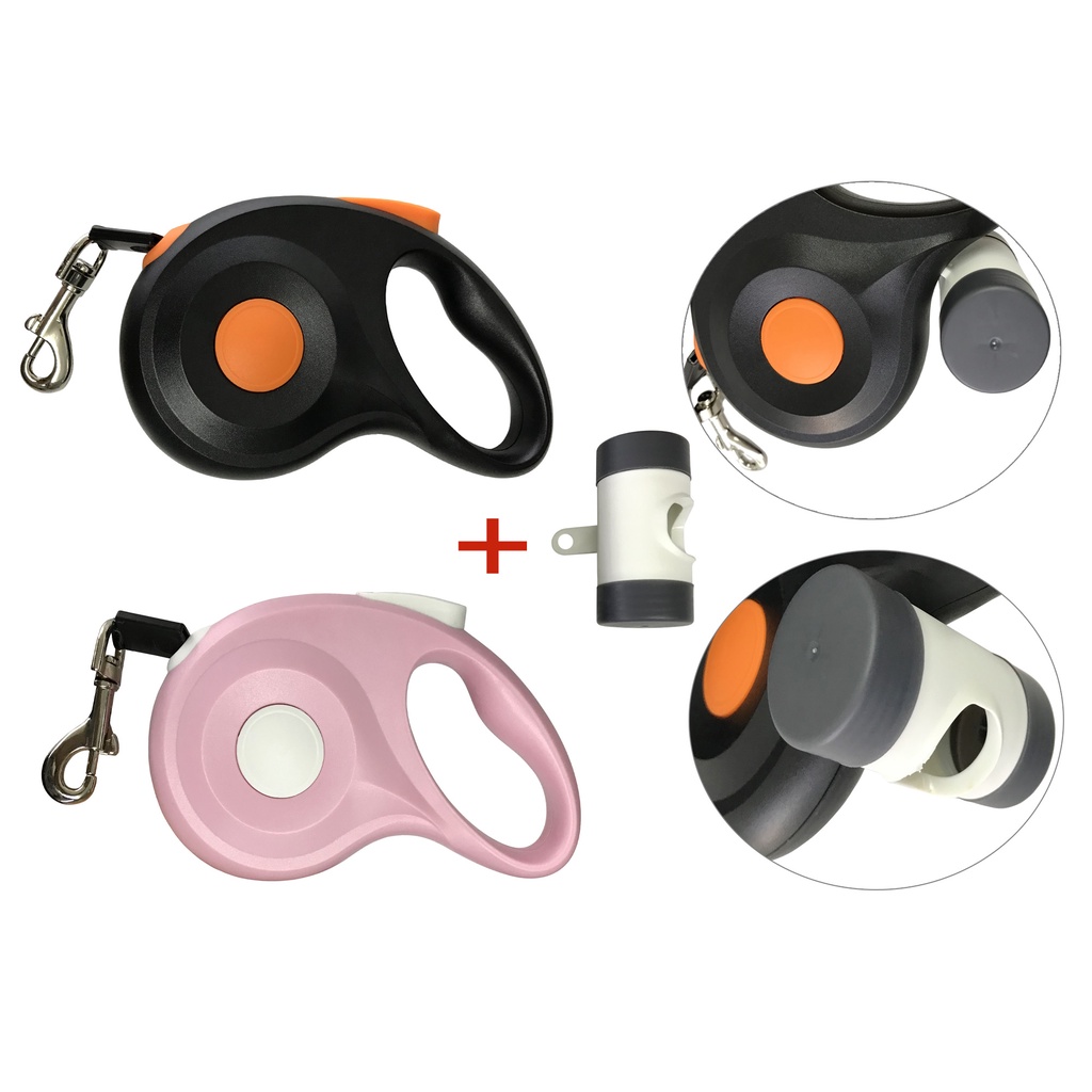 Guia Retrátil 5 Metros Com Suporte Para Saco De Fezes Coco e Botão De Controle Para Regulagem Pet Cachorro LR-0158