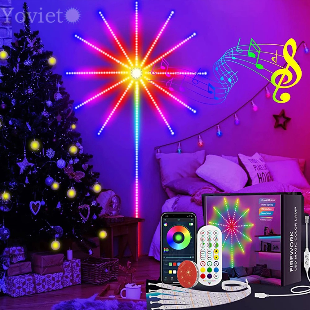 Luzes Coloridas Fogo De Artifício Fita LED RGB Lâmpada Noturna Música Sincronização De Som Controle Remoto Para Decoração De Férias Da Festa Do Quarto