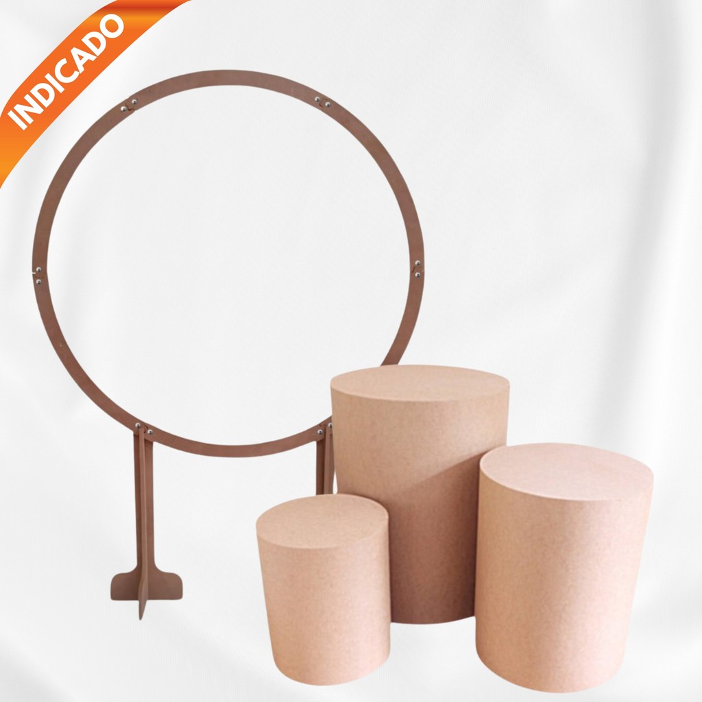 Kit Festa Pronta em MDF – Painel Arco + Trio de Cilindros para Decoração Temática com Estilo