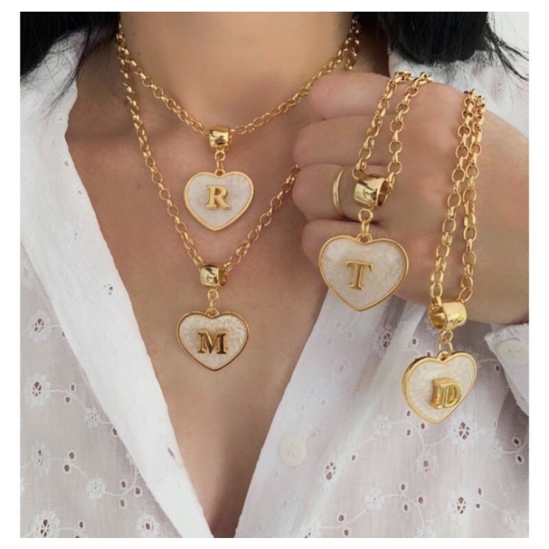 Colar Coração Com Pingente Inicial do Nome Super Tendência Feminino