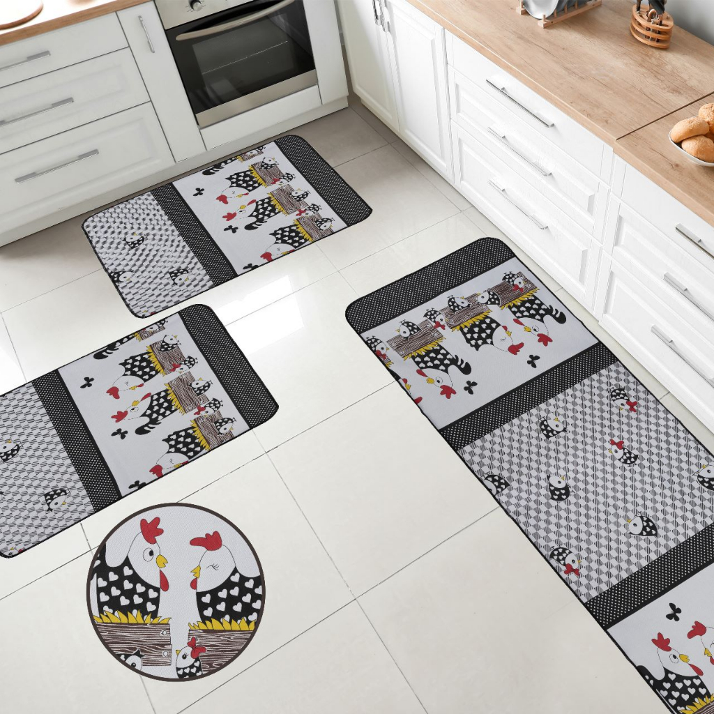 Kit De Tapete Para cozinha Antiderrapante 3 Pçs 1 Passadeira e 2 Tapetes