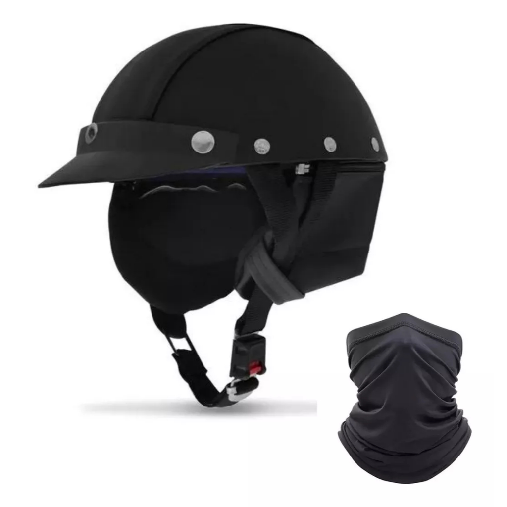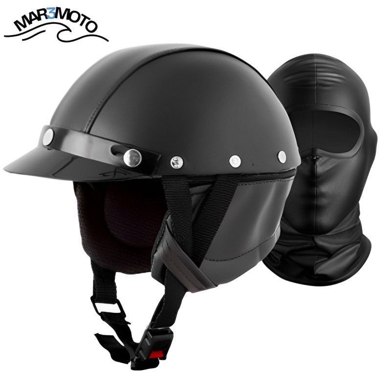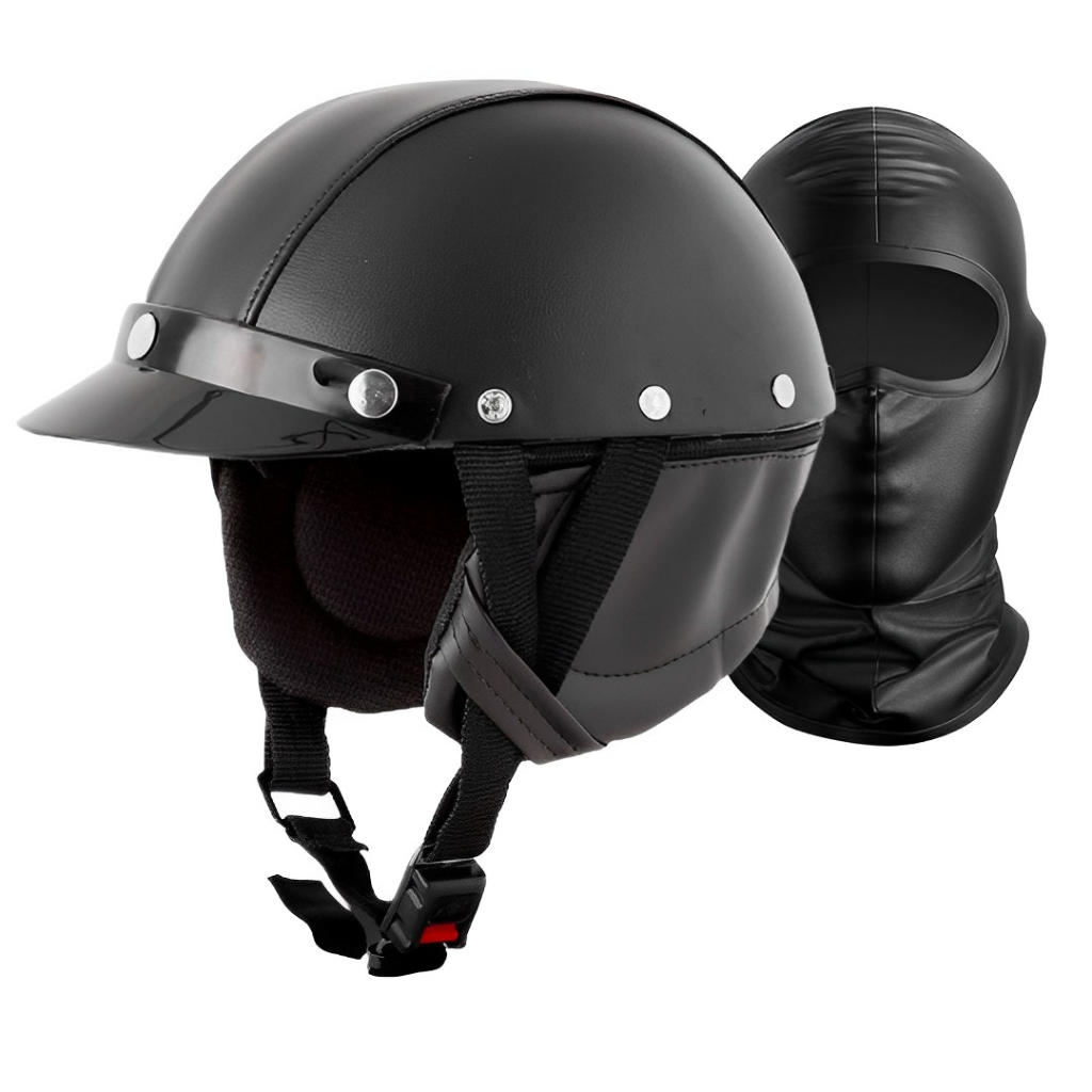 Capacete Moto Customizado Motoqueiro Coquinho Couro Bike Chopper Custom Harley Lançamento + Touca Ninja Balaclava
