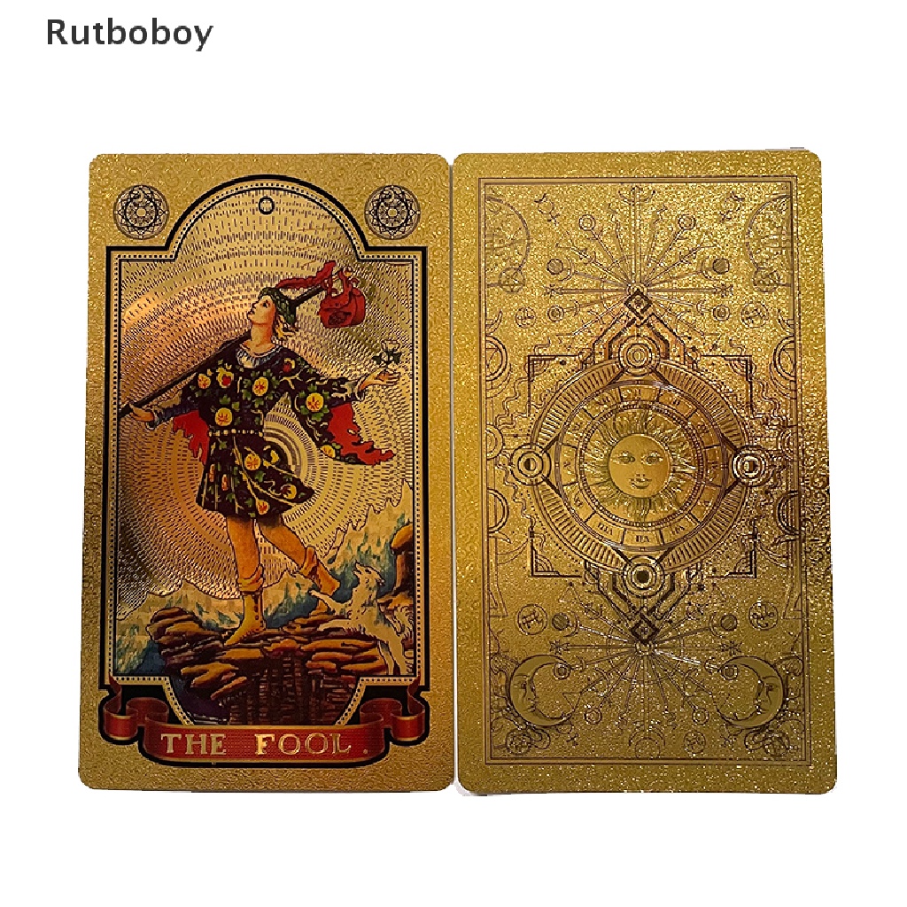 [Rut] Papel Manual De Folha Dourada Marca De Tarô Bronzeado PVC Impermeável Cartão De Jogo De Tabuleiro Resistente Ao Desgaste Oráculo Idioma COD