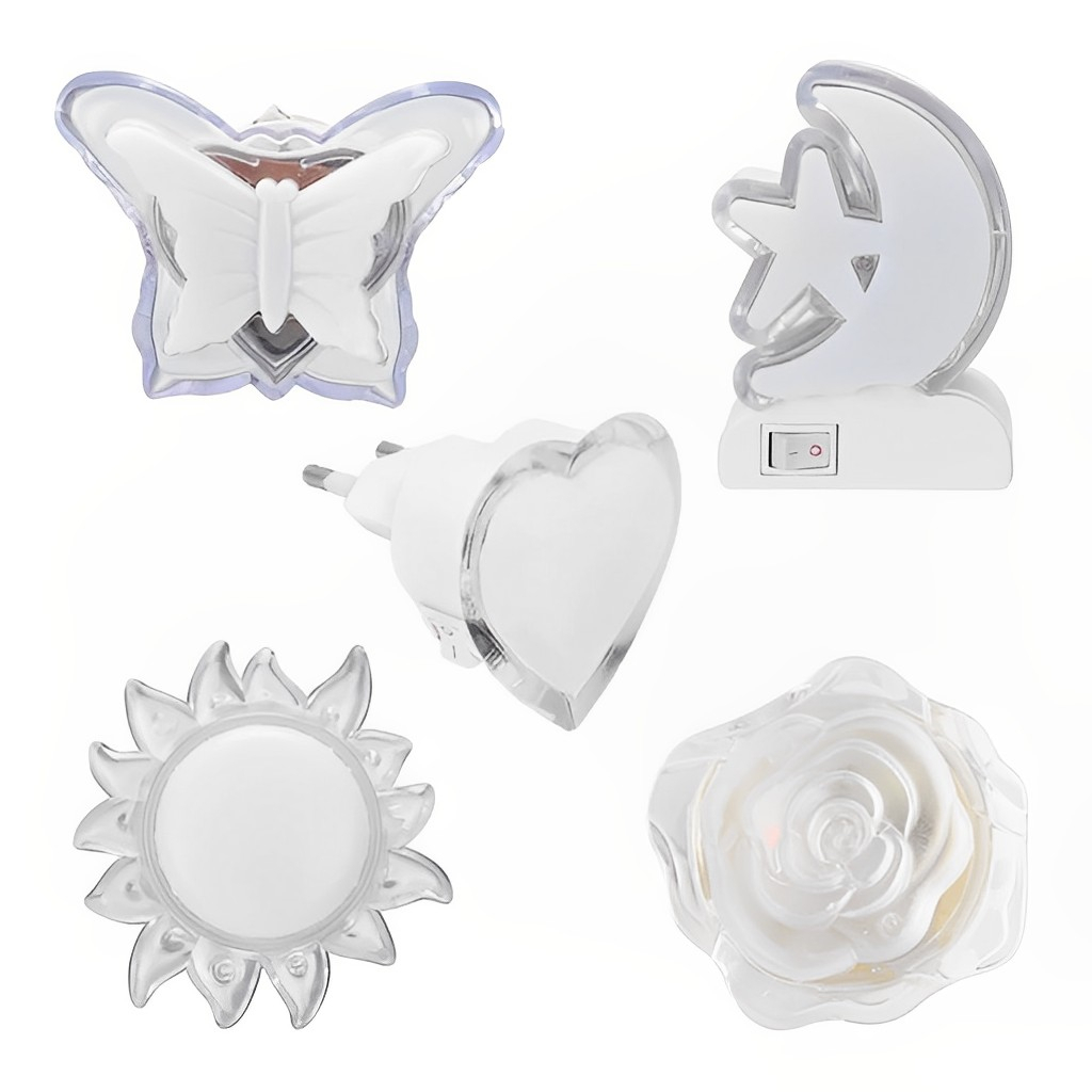 Luminária Noturna Led Abajur Tomada Led Colorido Bivolt Infantil Quarto Borboleta Lua Estrela Coração