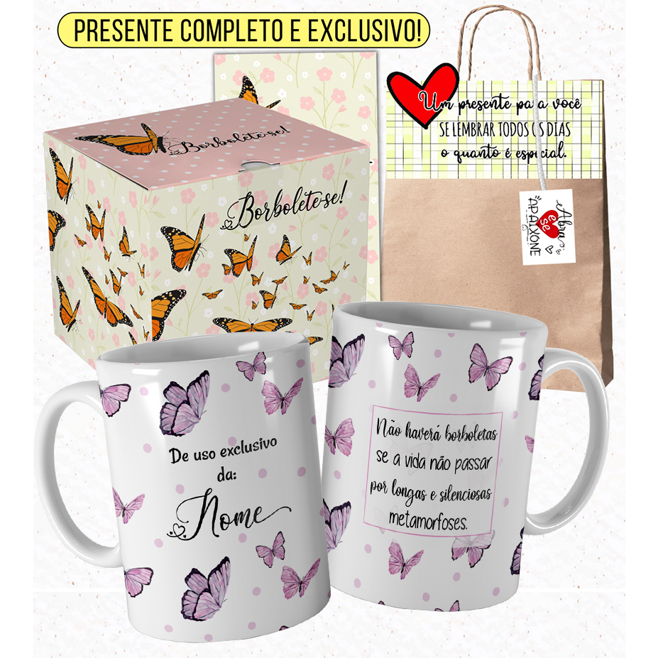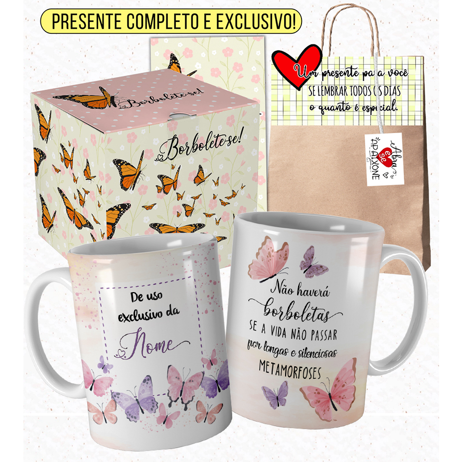 Caneca Borboleta Lindissima Não Haverá Borboletas Personalizada com Nome e Embalagem Presente