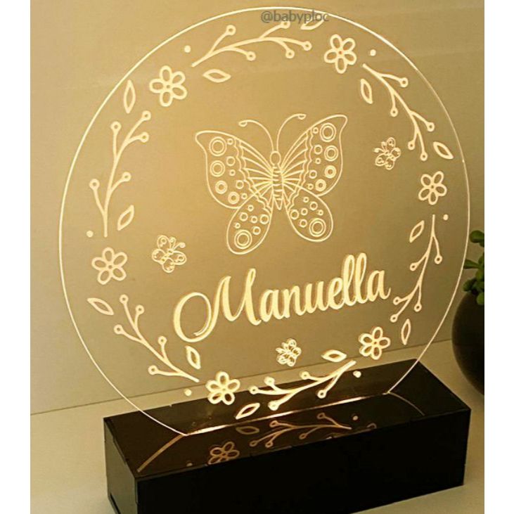 Luminaria redonda borboleta em acrilico personalizada Nome iluminação personalizada com a sua logo