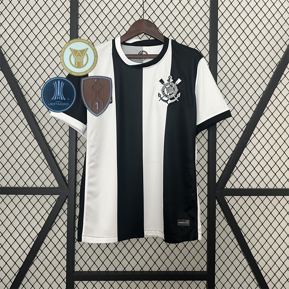 Camisa de futebol 24 /25 C-S No. 2 Camiseta de manga curta preta branca para homens de manga curta