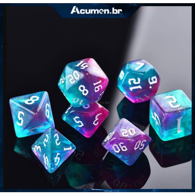 Kit 7 Dados dice diversas cores - Central - RPG Mesa - Jogo Tabuleiro D4 D6 D8 D10 D12 D20