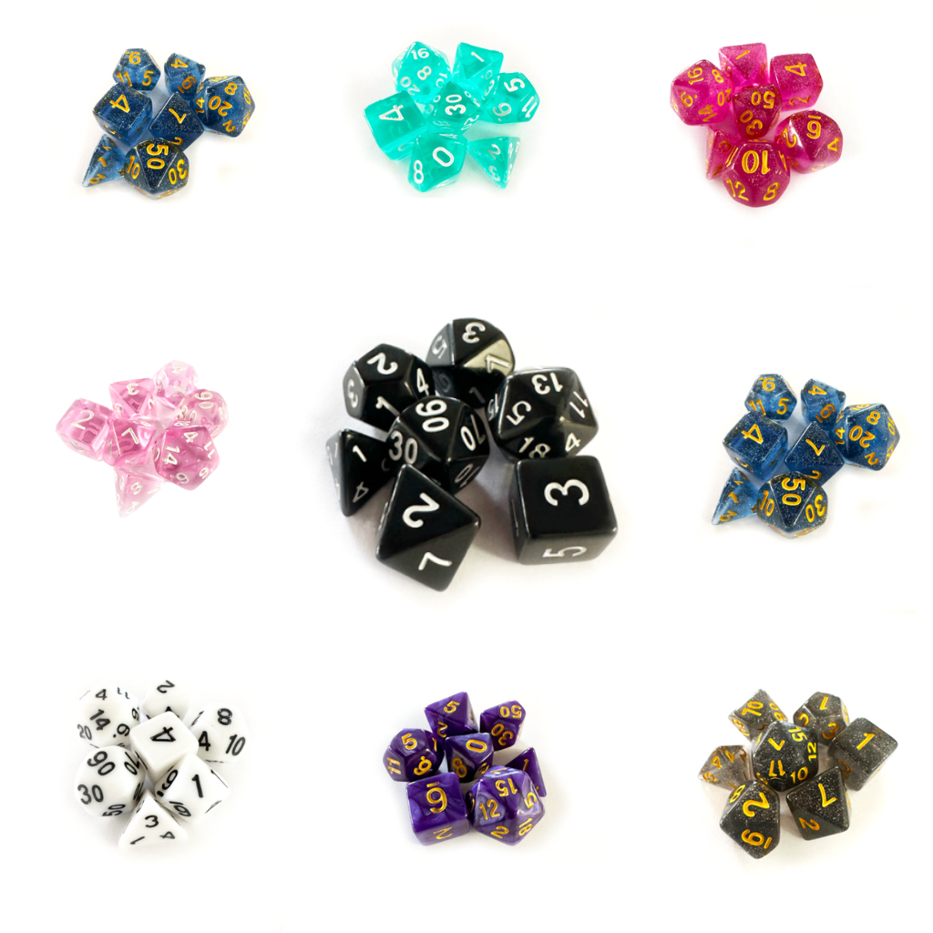 Kit 7 Dados para Jogo RPG + 1 BOLSA (D4 D6 D8 D10 D10% D12 D20) | VÁRIAS CORES E MODELOS