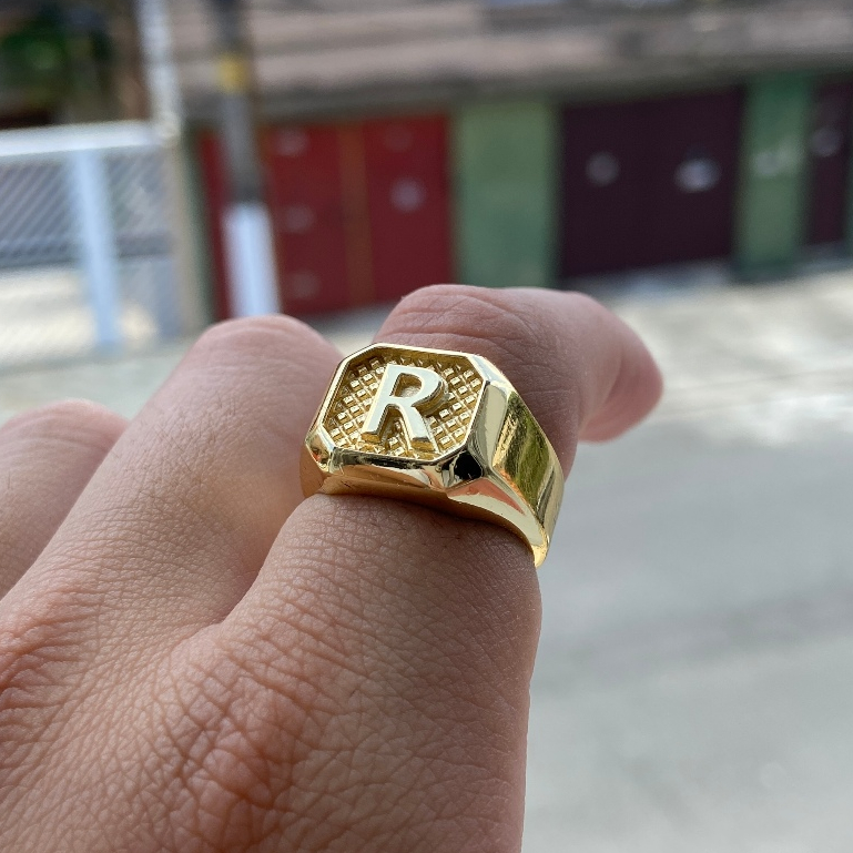 Anel Masculino De Ouro Anel de Letra Banhado a Ouro 24K Dedeira Anel Letra R