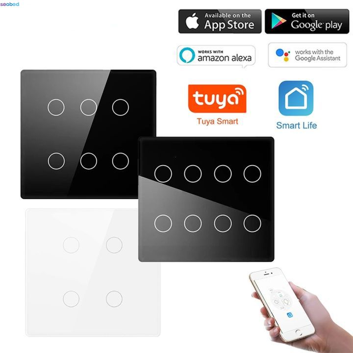 Tuya Wifi Smart Living 4x4 Interruptor de luz Sensor de toque de parede 4/6/8 Gang Jammer Painel de vidro Controle remoto Alexa Google Home fundo do mar