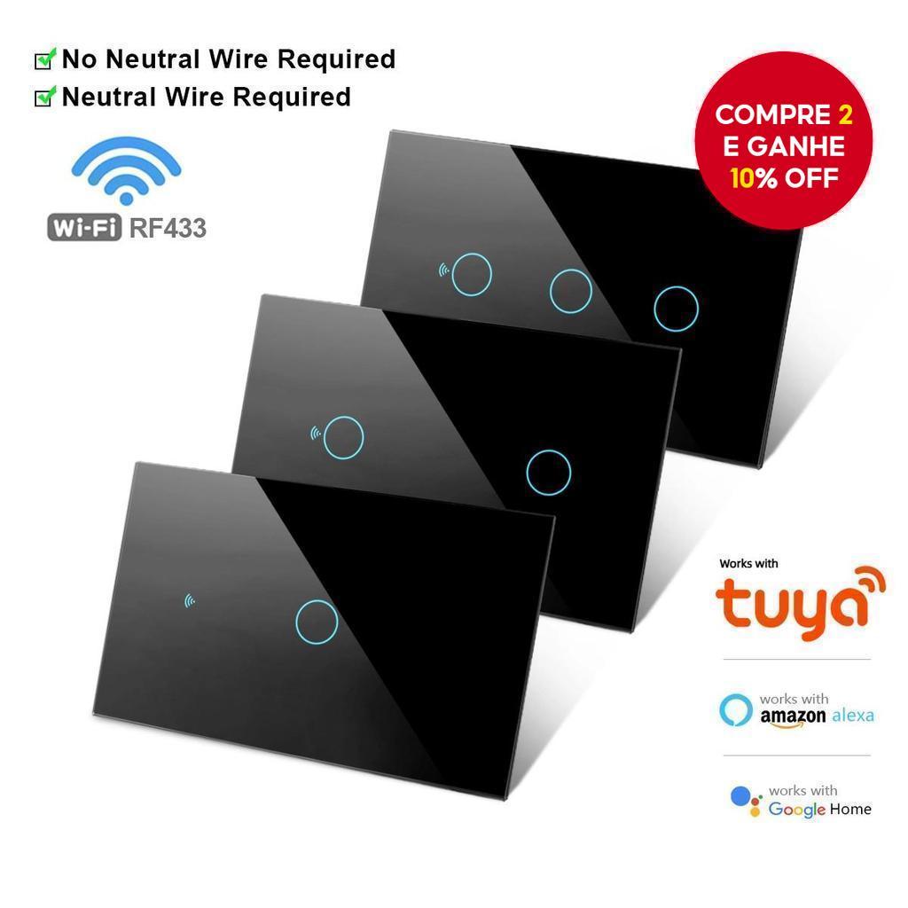 Funciona com o Interruptor de Parede Inteligente Tuya US WiFi RF433 1/2/3/4 Gangue Sem Fio Neutro Sensor de Toque LED