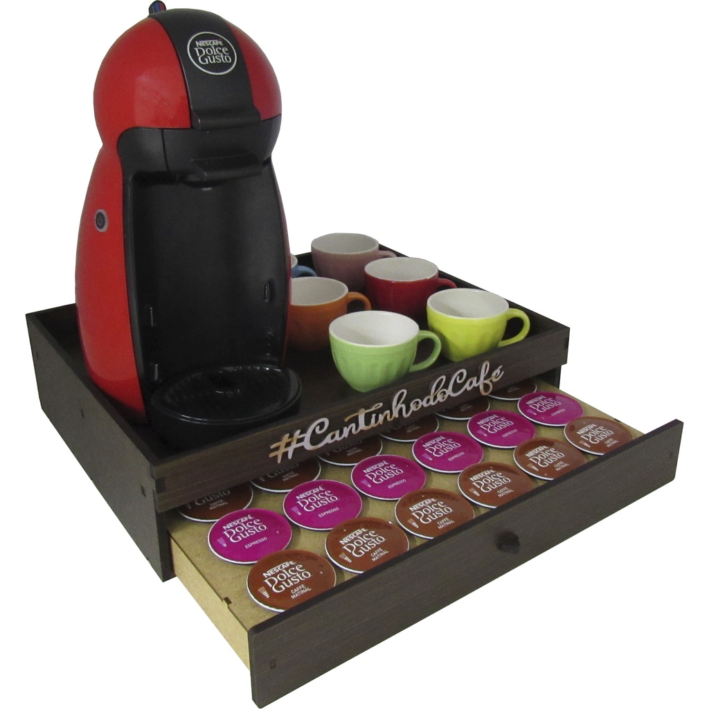 Porta Cápsulas Máquina Cantinho do Café Dolce Gusto 1 Gaveta Amadeirado Mdf